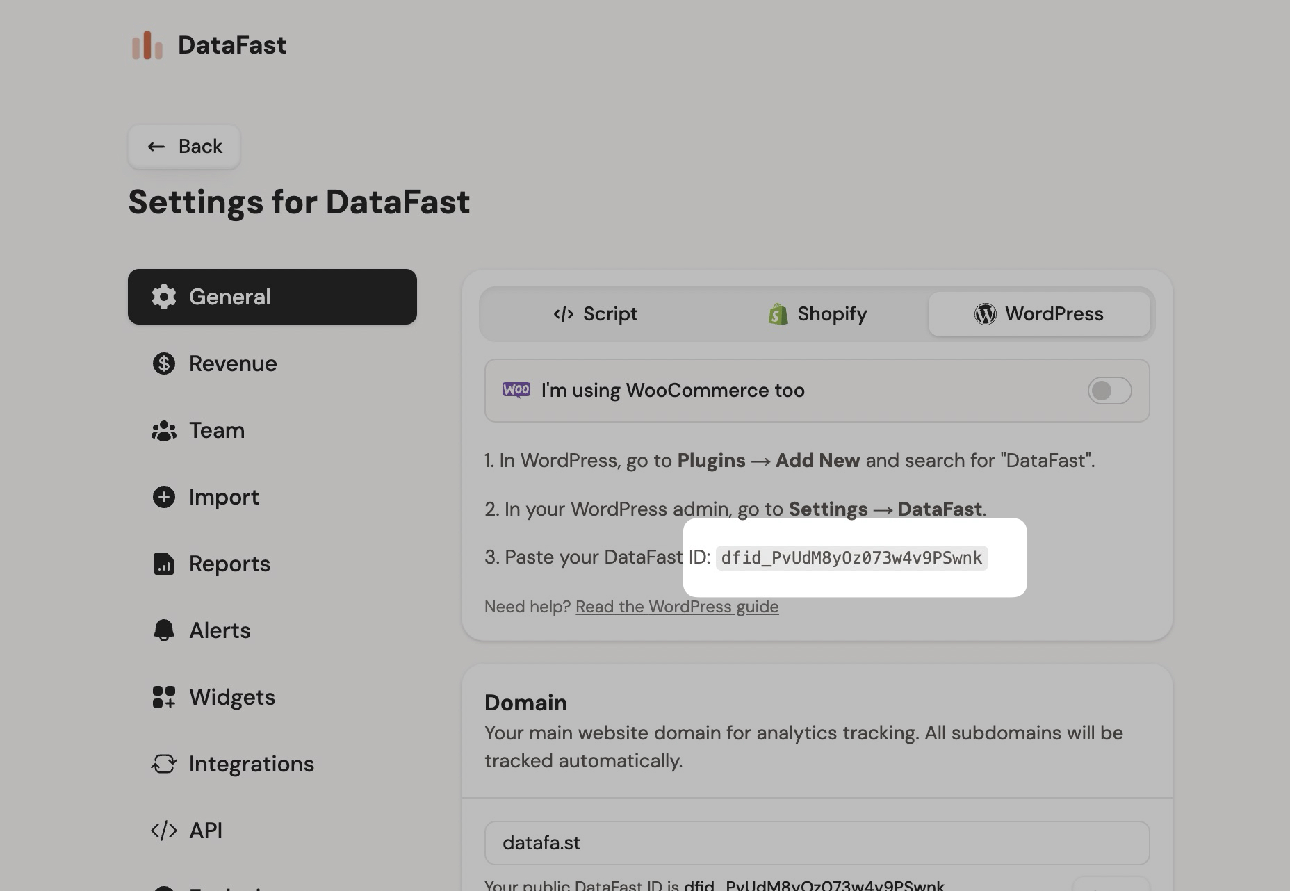 Follow these steps to integrate DataFast analytics into your WordPress site.